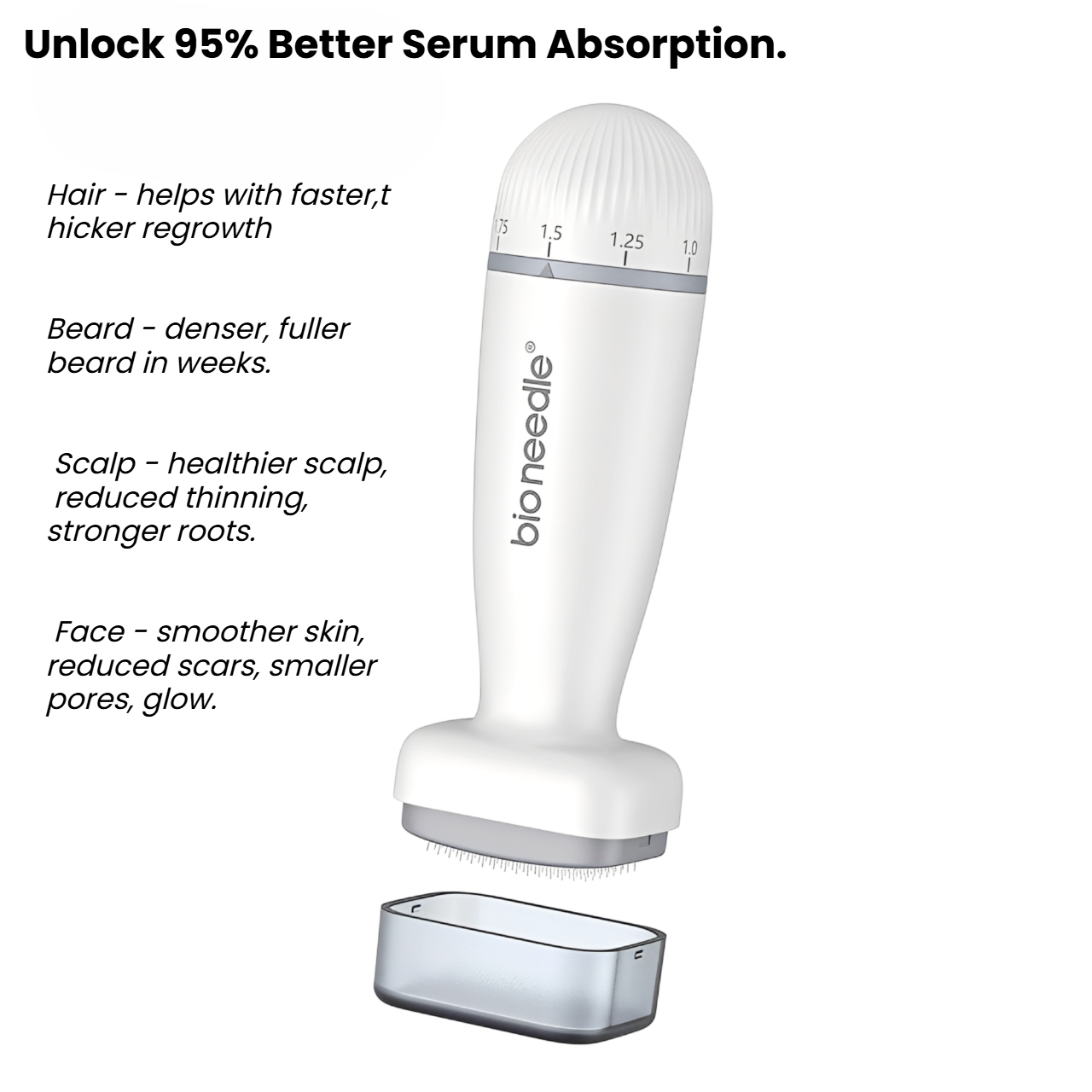 BioNeedle Adjustable Microneedle Derma Stamp – The Ultimate Unisex Tool for Flawless Skin + Thicker Hair & Beard Growth